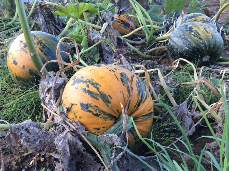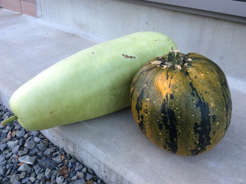 このカボチャは、よくスーパーで売ってる西洋種の栗カボチャでもなく、保存のきく東洋種の白カボチャでもなく、ズッキーニ、おもちゃカボチャと同じぺポ種のカボチャだ。