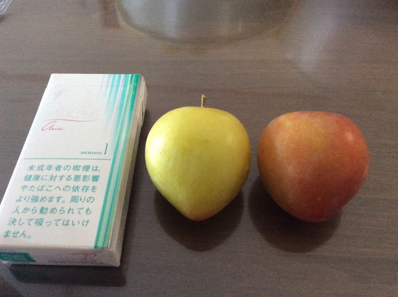 追記(自分用覚え書き):今朝、再度症状の出ている果実を切って調べてみたところ、果皮付近に1mmくらいの虫(白い芋虫状の)がいて、果皮にもよくよく見ると針で刺したような小さな穴が開いていた。シンクイムシの被害ではないと思っていたが、どうやらヒメシンクイで間違いなさそうだ(シンクイムシはたまにリンゴの中心に入ってる1cmくらいのものを想像していたので、まさかヒメと普通のシンクイの大きさがこれほど違うとは思わなかったため)