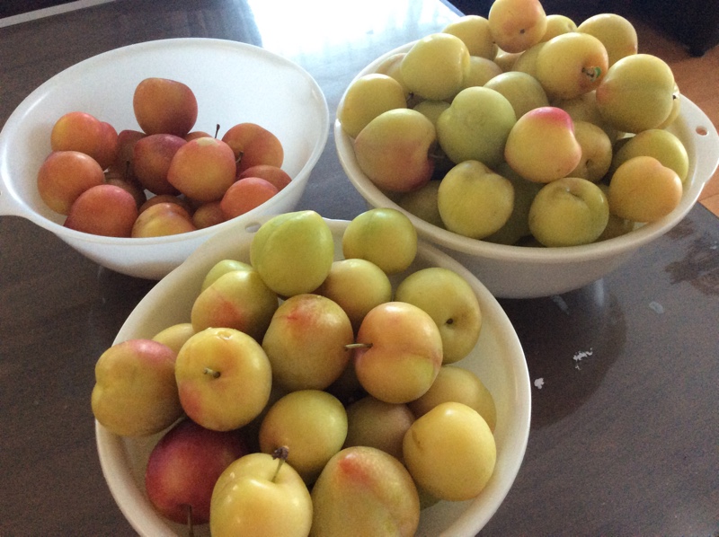 それからうちのスモモはなぜか実をつけるはつけるのだが、木で熟すにつれて片側がぶつけたみたいに赤茶色っぽくなってしまう